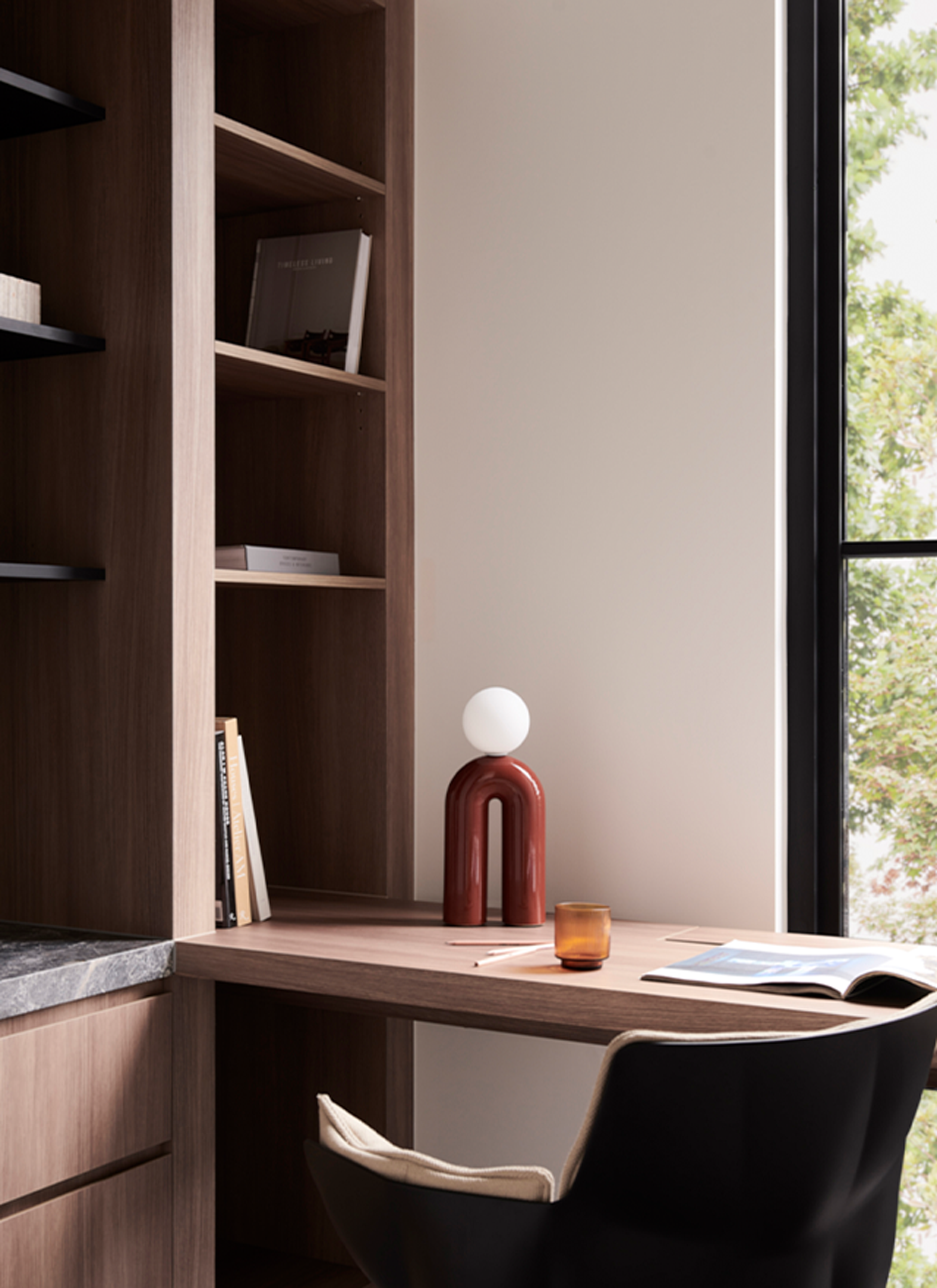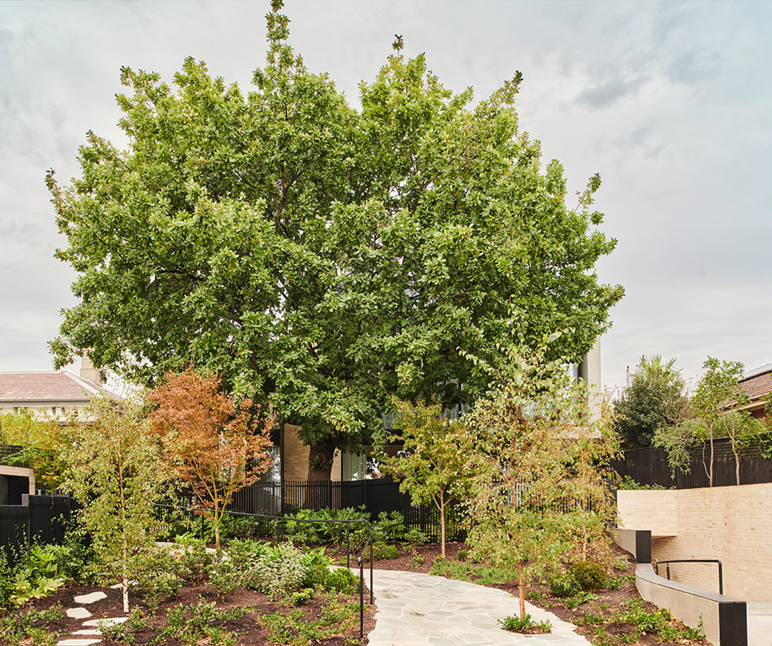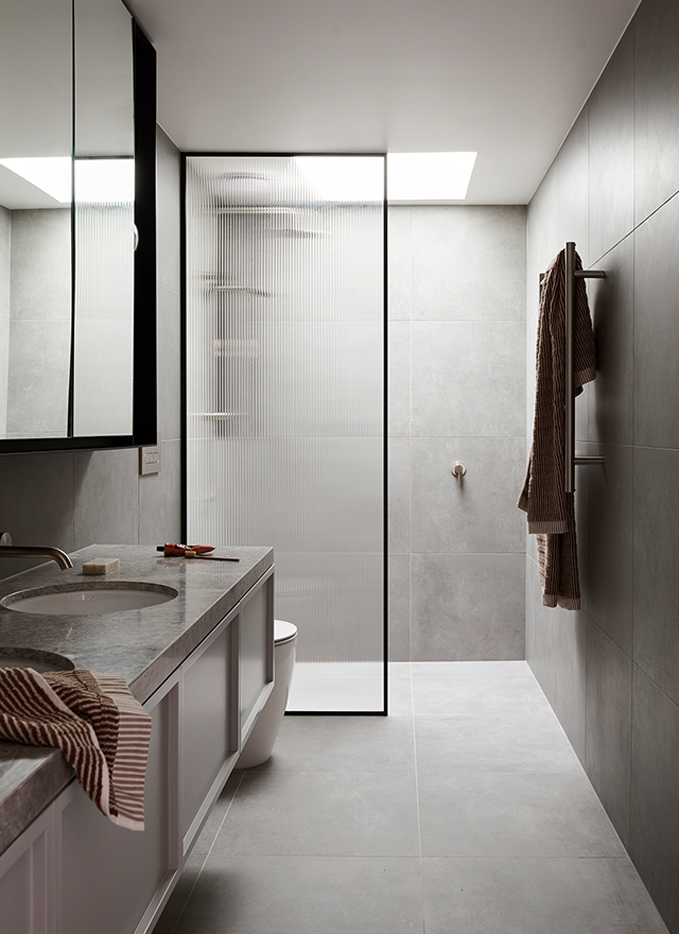 Despite its weathered state, the homestead possessed a captivatingly handcrafted aesthetic, evident in every detail – from the rugged elegance of the stone steps at the entry, to the intricate timberwork and stone masonry framing grand fireplaces, to the ornate ceiling roses overhead. As a unique point of difference, the interior design for the new residences immortalises the history of the previous home, through subtle design cues in contemporary form. Reflecting the architectural tapestry of Hawthorn, the design fosters a seamless interplay of textures from entry to the elegantly appointed powder room.