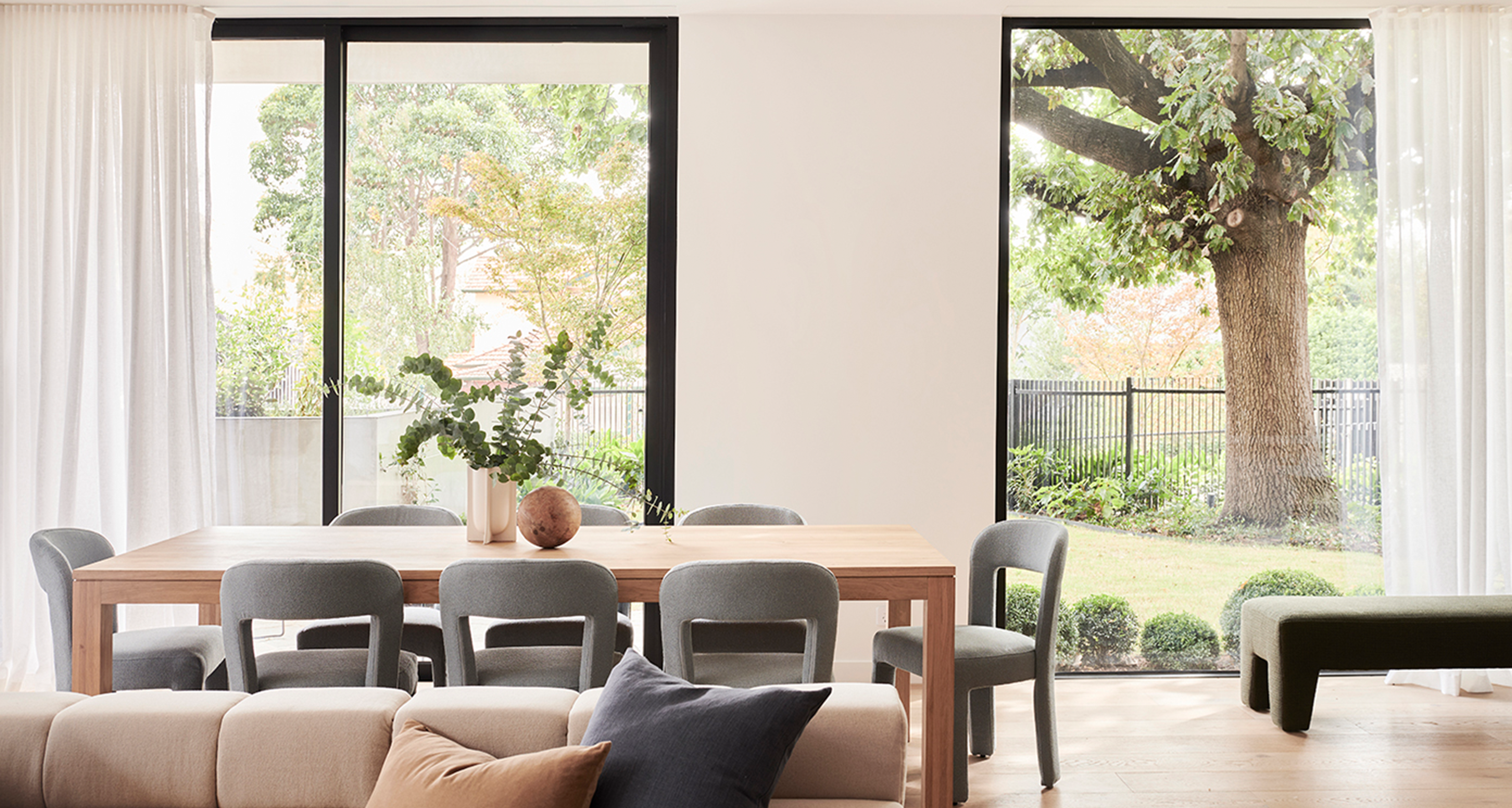 The contemporary built form feels enduring – paying homage to the history of the site and the established surrounding landscape. The seven townhomes have a sense of generosity in scale, quality of finish and lifestyle. The initial site visit kindled a deep enchantment for the original homestead, becoming a profound source of inspiration for the interior design journey.